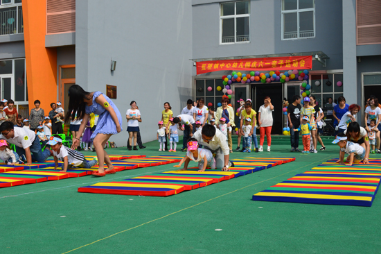 活動進入比賽環節,操場上氣氛更加熱烈。“比誰爬得快”、“穿越障礙物”、“搶尾巴”、“我幫爸媽穿衣服”等游戲無不考驗著家長和孩子的默契程度,側重于培養孩子們的頑強意志和爭先意識,也彰顯了虹橋鎮中心幼兒園“課程游戲化”的教育理念和成果,贏得了社會各界的認可和好評。