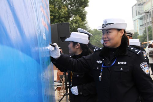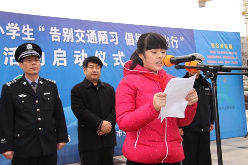 活動(dòng)首先由市公安局黨委委員、副局長(zhǎng)蔡林發(fā)表熱情揚(yáng)溢的致辭;駕駛員代表、校長(zhǎng)代表作表態(tài)發(fā)言;鼓樓中心小學(xué)的學(xué)生率先向社會(huì)發(fā)出倡議:告別交通陋習(xí),從我做起;市委宣傳部副部長(zhǎng)、市文明辦主任張余華講話并宣布啟動(dòng)儀式正式開始。所有參會(huì)人員紛紛在“告別交通陋習(xí),從我做起”巨幅背景墻上簽名承諾,現(xiàn)場(chǎng)發(fā)放交通安全宣傳品和122宣傳畫冊(cè)。