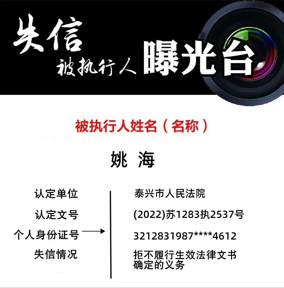 【曝光失信案例】曝光泰興這兩名失信被執行人!