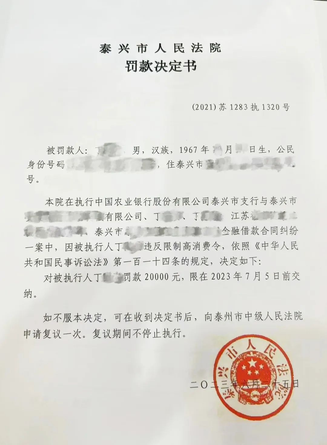 【曝光失信案例】泰興一男子違反“限高令”被罰20000元!