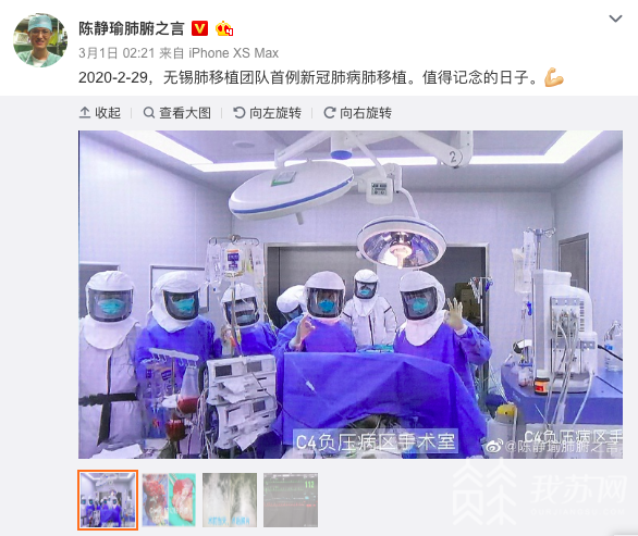 (省市專家為江蘇重型病例遠程會診 圖片來源:金山網) 全國首例新冠肺炎轉陰患者雙肺移植術在江蘇成功開展 2月29日,我囯著名肺移植專家陳靜瑜教授團隊,在無錫成功開展全國首例新冠肺炎轉陰患者雙肺移植手術。我蘇網了解到,該名患者為59歲的連云港籍工程師。3月9日,這位由無錫、連云港兩地接力救治的患者痊愈出院了。