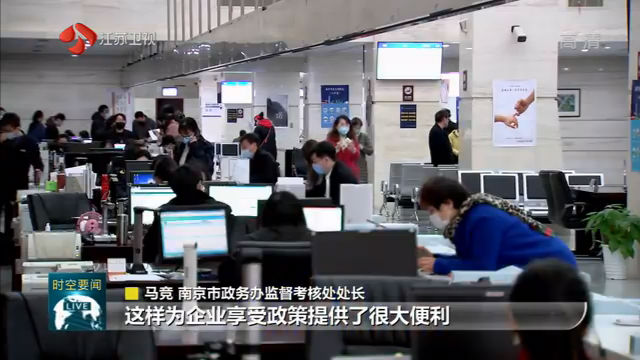 江蘇臺記者張賀說:“這里是南京市政務服務中心,為了讓省政府發布的‘蘇政50條’政策更好地惠及南京企業和市民,這里開設了‘蘇政50條’專窗。在這個專窗不僅可以咨詢,還可以受理"蘇政50條"中涉及到市級層面的126個服務事項。”