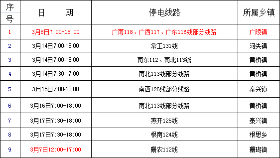 注:以上停電遇雨順延,詳情請洽江蘇電力客服熱線87992358