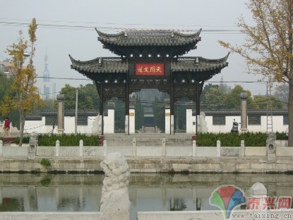 【古牌樓、奎文閣、鯤化池】據《泰興縣志》載,奎文閣又名文昌閣,始建于清康熙五十年,后乾隆二十年、二十八年兩次修繕。閣基甚高,共兩層,外呈六角形,中祀魁星,故又稱魁星閣。鯤化池建于明代隆慶元年,半圓形水池,直徑38.57米,塊石砌筑,池周圍裝有石欄,雕有精美圖案。古牌樓始建于南宋文宗紹興年間,元末毀于兵火,明洪武三年故址重建。古牌樓又稱“筆字架”,概其形似一筆擱于架上;橫批“金聲玉振”,題寫者為泰興籍書法家、浙江省書法家協會會長、浙江大學美術學院教授王冬齡;東西兩側牌坊分別叫做“禮門”、“義路”。 【古洗缽池】泰興城內古時有座廣福寺,遺址在今泰興國際大酒店東部。始建于唐光化二年(889年),為著名禪林。因寺舊有彌勒、慈氏、文殊、大悲、普賢、釋迦、地藏、觀音、羅漢、吉祥等十院,故又名十院寺。寺后有池曰洗缽池,為神僧法響洗缽處。傳說他能將齋缽翻轉洗滌,法響又稱伏虎禪師。唐時泰興地界尚有虎害。法響設齋召虎,虎至而順伏不動,法響以杖擊其背和腿。虎受到懲罰,從此虎患絕跡。如今,洗缽池之名尚在,但其池已經湮沒。2003年3月12日,清華大學美術學院教授程允賢、李念祖(泰興籍)聯合創作的伏虎禪師塑像由北京運抵泰興。