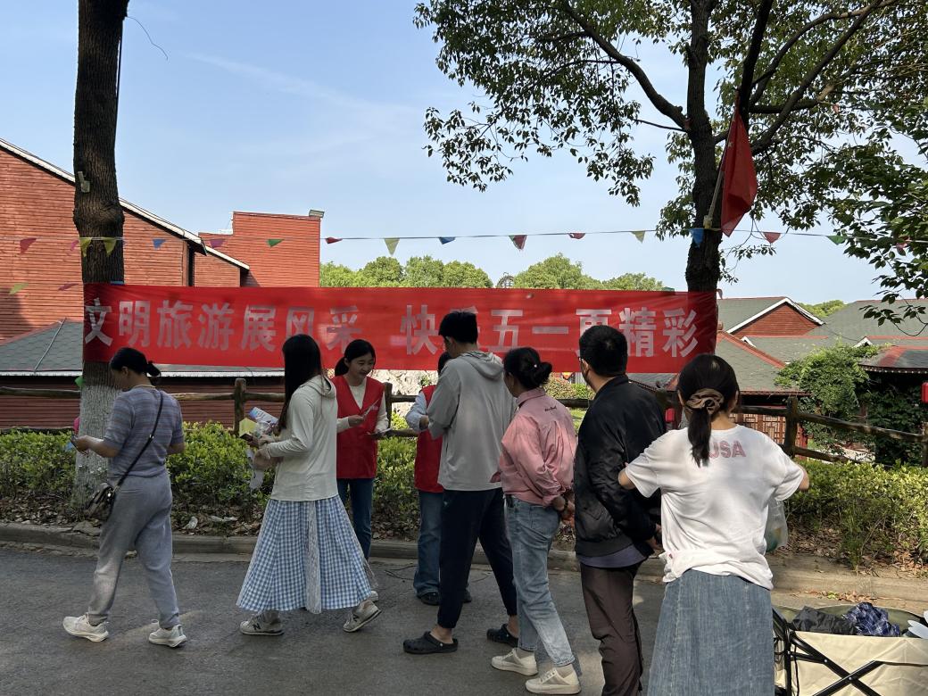 為營造文明和諧的假日旅游氛圍,提升游客出行體驗,泰興市文體廣電和旅游局在五一假期期間,統籌全市重點景區,發起“文明相伴·暢游泰興”主題宣傳活動。通過各景區志愿者引導、互動宣教、柔性管理等方式,倡導游客踐行文明公約,共同守護景區環境,讓“詩與遠方”與文明同行。 1.志愿者進景區宣傳文明旅游 各景區入口設置了文明旅游宣傳展板,循環播放文明倡議短片,志愿者向游客發放《文明旅游宣傳手冊》及環保袋,結合趣味問答贈送定制文創小禮品,吸引游客主動學習文明規范。