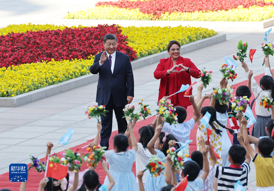 6月12日下午,國家主席習(xí)近平在北京人民大會堂同來華進(jìn)行國事訪問的洪都拉斯總統(tǒng)卡斯特羅舉行會談。這是會談前,習(xí)近平在人民大會堂東門外廣場為卡斯特羅舉行歡迎儀式。新華社記者 黃敬文 攝