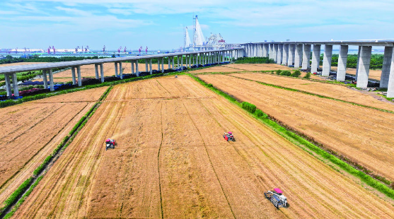 風吹麥田千層浪,又到一年收獲時。日前,在泰興市張橋鎮桂芳家庭農場,3臺聯合收割機正在麥田里作業。大型旋耕拖拉機緊隨其后,邊耕邊埋,讓秸稈盡快翻入土壤,為秸稈高質量還田以及水稻高質量栽插打好基礎。農場的3臺收割機還被編入“夏收農機突擊隊”,承擔周邊2000多畝小麥的搶收任務。 俗話說,小麥“九成熟,十成收,十成熟,一成丟”,可見收割時間需要精準把握。張橋鎮今年在田小麥面積超過36000畝,按照先后成熟情況,提前組織農技人員深入田間地頭,指導農民做好收獲期田間管理工作。全鎮共協調安排了52臺大型聯合收割機、25套烘干設備。 “預計今年我鎮小麥平均產量每畝在450公斤以上。目前,我們已經進入大面積收割時期。由于今年雨水天氣較多,小麥的生長和收割進度有所滯后。我們建議廣大農戶,抓住當前有利的晴朗晴好天氣,抓緊時間收割,確保顆粒歸倉。”張橋鎮農業農村局耿開表示。 根據最新的農情調度顯示,目前,泰興市小麥大部分已經成熟,大規模機收已陸續開展。虹橋、濱江、張橋等西部鄉鎮,稻茬小麥全面開鐮收割。農業農村部門提醒,要密切關注天氣情況,及時搶收。收割期若遇持續降雨,易發生小麥穗發芽,不利于小麥脫粒、晾曬和儲存,要視天氣情況提早搶收,做到成熟一片收割一片;同時全面開啟糧食烘干及倉儲設備,加大收儲力度,以防麥穗發芽或霉變影響品質。 |