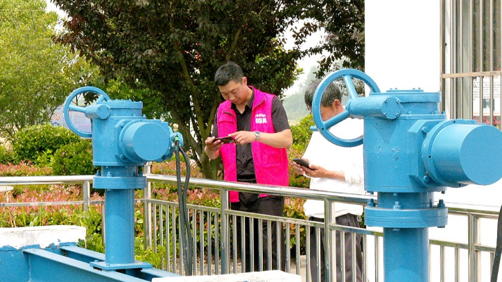 6月18日,在泰興市延令街道三陽村,防汛值班人員與村干部正一同查看閘口內河水位,并進行拍照上報。據了解,三陽村地勢整體偏低,緊挨著天星港,河汊與中溝縱橫交錯。“我們制定了日夜值班制度,倘若發現下雨持續不斷,或者內河水位較高的情況,以便能及時做好應對工作。”三陽村村委會副主任符榮軍介紹。