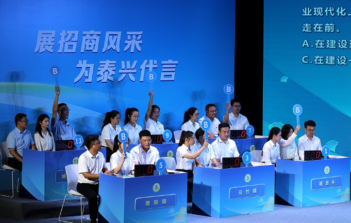 做好招商引資“答題人”,當好創新發展“排頭兵”!為深入學習貫徹黨的二十屆三中全會精神,進一步解放思想、深化改革、創新思路,調動各招商單元抓項目、興產業、促發展的主動性和創造性,以招商引資新成效激發高質量發展新動能,9月29日,泰興市舉行2024年“雙招雙引”金秋“擂臺賽”,6個招商單元“高手過招”,堪稱一場招商人的“華山論劍”,既展示了泰興招商的硬實力,更展現了泰興作為投資熱土的獨特魅力和巨大潛力。