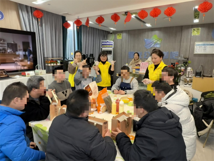 開展輪崗實(shí)訓(xùn),推動(dòng)角色真實(shí)轉(zhuǎn)型 項(xiàng)目核心環(huán)節(jié)“今日我是主理人”輪崗實(shí)訓(xùn)于2026年1月29日在星光公益咖吧開展。實(shí)訓(xùn)圍繞咖啡吧服務(wù)全流程,設(shè)計(jì)迎賓、點(diǎn)單、制作、送餐等七大模塊,采用“分步教學(xué)—模擬演練—角色扮演”的漸進(jìn)模式,支持學(xué)員在真實(shí)場(chǎng)景中完成從“學(xué)習(xí)者”到“服務(wù)者”的轉(zhuǎn)變。通過設(shè)置“安靜角”、配備一對(duì)一志愿者及可視化引導(dǎo),營(yíng)造低壓學(xué)習(xí)環(huán)境,學(xué)員逐步掌握服務(wù)流程,在實(shí)踐中建立自信與價(jià)值感。