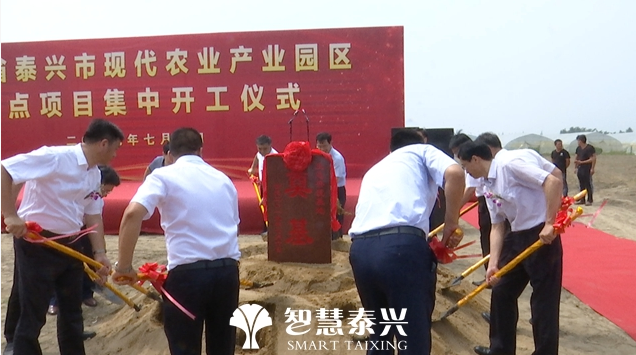 ![]() (記者 燕麗娟)7月6日上午,泰興現代農業產業園區舉行重點項目集中開工儀式。省農業農村廳副廳長朱新華,泰州市副市長陳明冠,我市市委常委、政法委書記徐聞仲,市人大常委會副主任張金堂,副市長謝紅官,市政協副主席劉建為項目開工培土奠基。